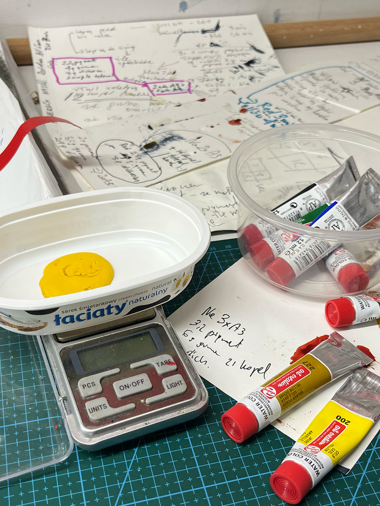Tu jest przestrzeń dla notatek z pracy, testów chemicznych, technicznych pomyłek i refleksji, które nie mieszczą się w gotowym obrazie. To miejsce…